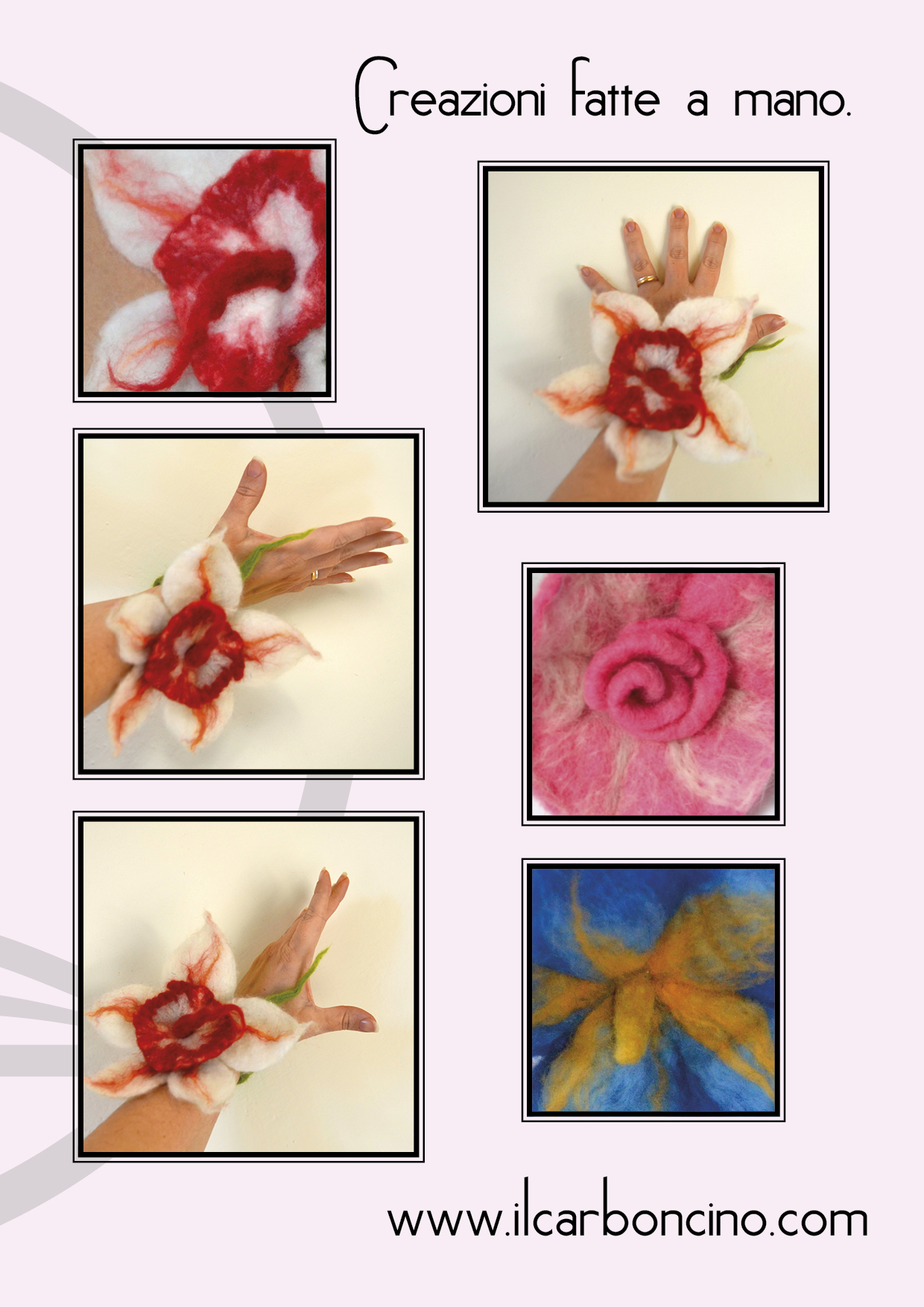 Fiori di lana: istruzioni per l’uso marzo 14, 2014marzo 14, 2014 Il carboncino® Alcuni suggerimenti su come indossare i fiori di lana della linea Morbide imperfezioni: al collo, al polso… oppure come semplice accessorio decorativo per la propria borsa o per la propria casa. Condividi: Condividi su X (Si apre in una nuova finestra) X Condividi su Facebook (Si apre in una nuova finestra) Facebook Mi piace Caricamento... Correlati